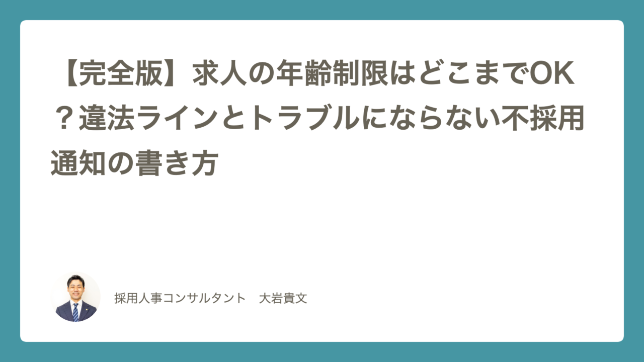 • 「年齢制限の伝え方は?」 現場の不安を解消する実務FAQ集 。