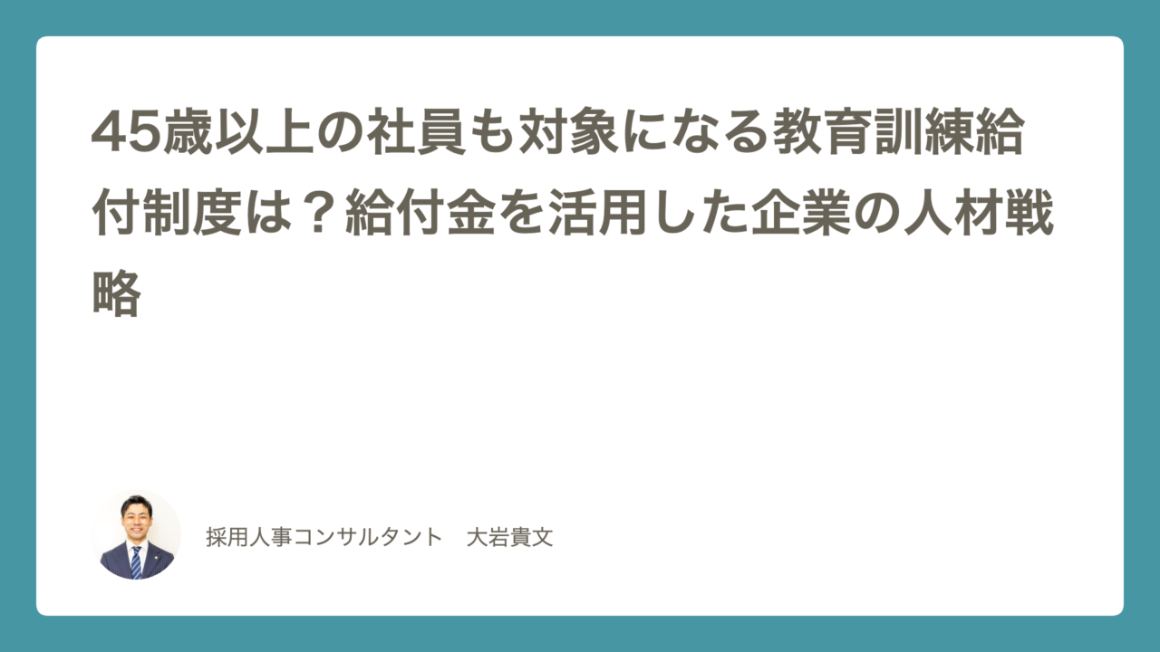 本記事では、45歳以上の社員も対象となる教育訓練給付制度の詳細と、その活用方法について解説します。